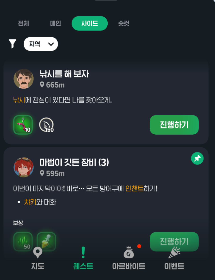 퀘스트가 활성화되면 본격적인 미션이 시작됩니다.