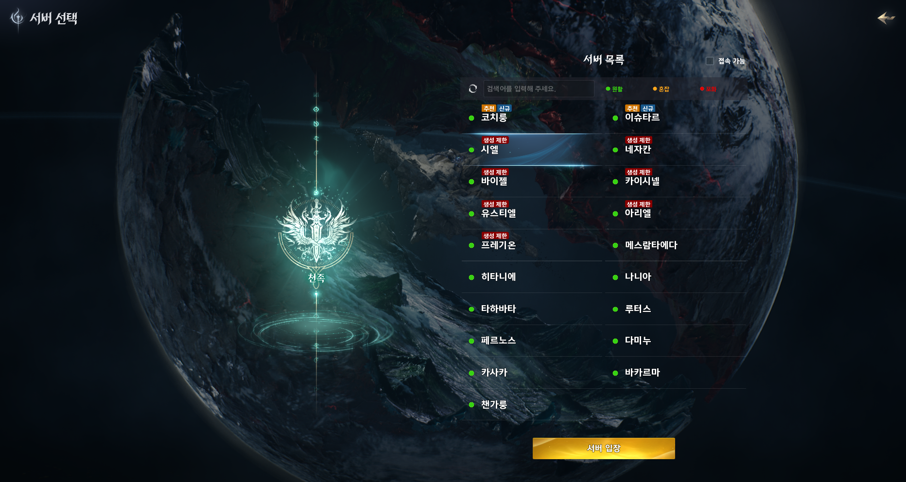 ⚔️ 몇 분만에 마감된 1서버: 시엘(천족), 이스라펠(마족)