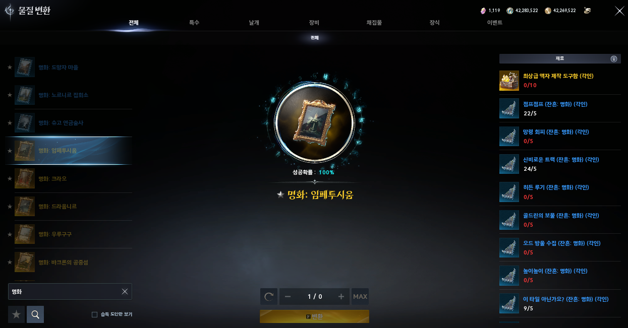 - 명화 팁: 명화: 임페투시움 제작 시, 신규 추가된 '미니게임 : 팡팡팡의 잔흔'은 필요 없으니 체크해 두세요!