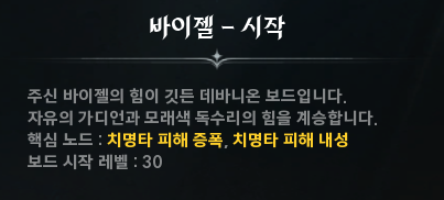 - 바이젤 (Lv.30 이상): 치명타 피해 증폭, 치명타 피해 내성