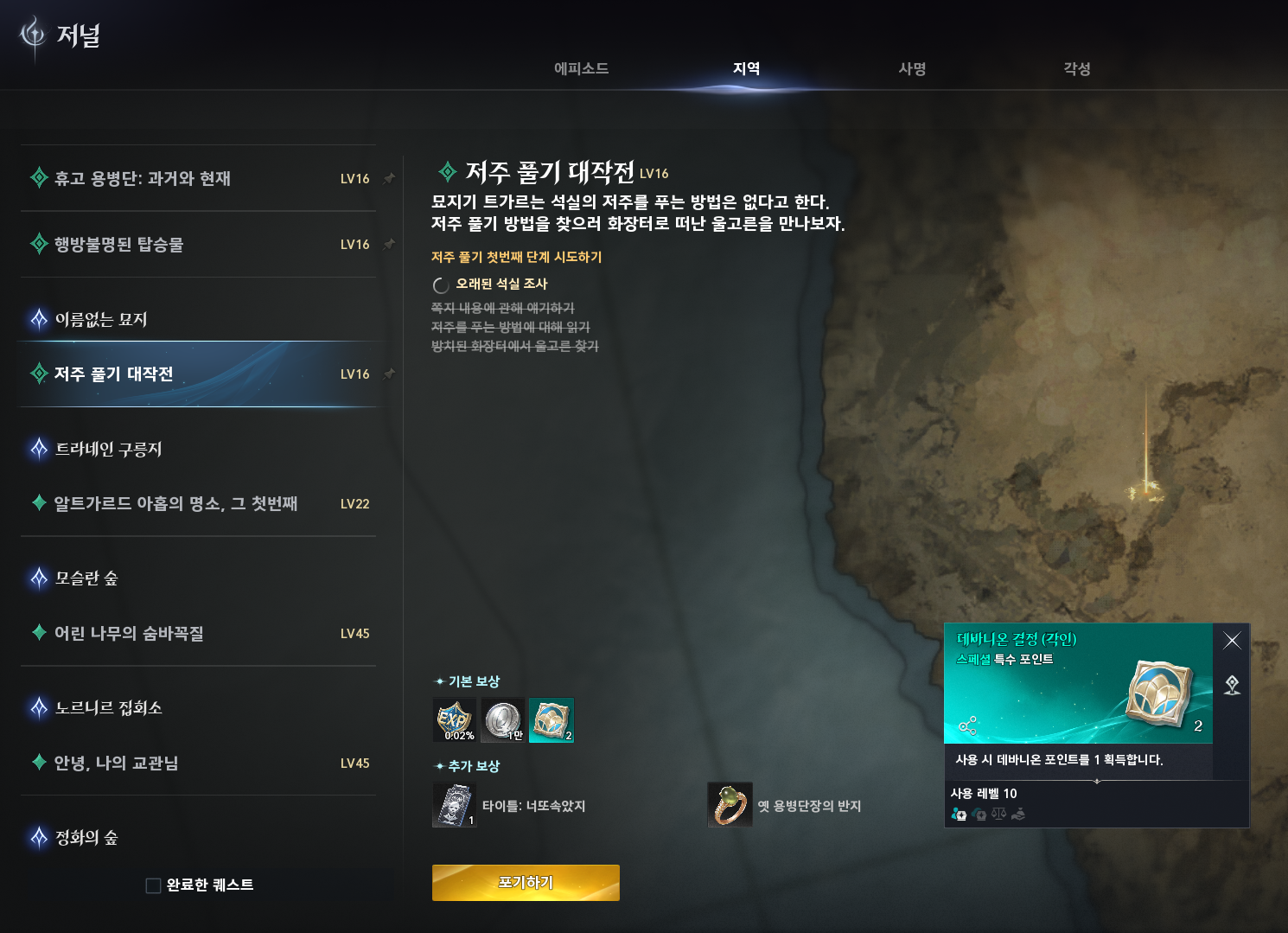 | 퀘스트 및 업적 | 지역 퀘스트 보상 및 업적 달성을 통해 획득 |