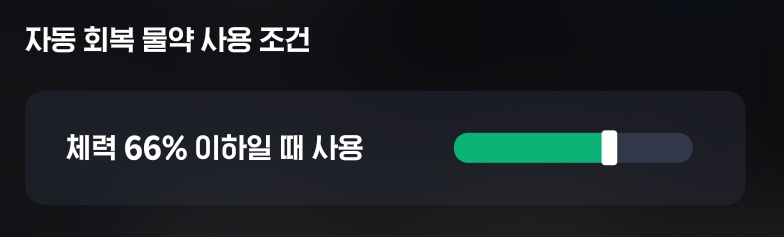 체력 퍼센트 기준으로 자동 물약 사용 시점을 설정할 수 있게 되었어요.