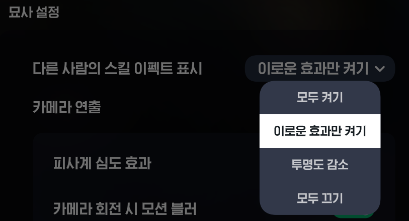 다른 사람의 스킬 이펙트 표시를 원하는 방식으로 설정 가능!
