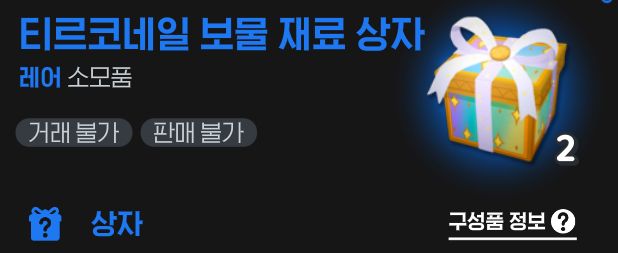 - ‘달걀’ 수급 (티르코네일 보물 상자 등)