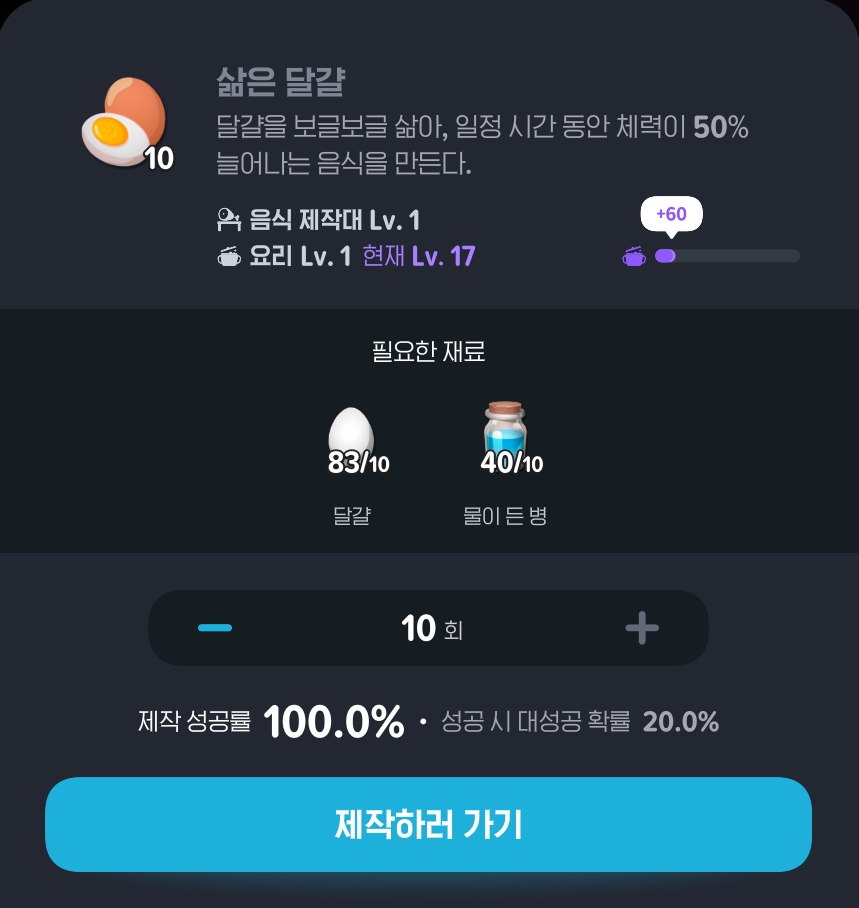 - 삶은 달걀 제작 → 공용보관함으로 옮기기