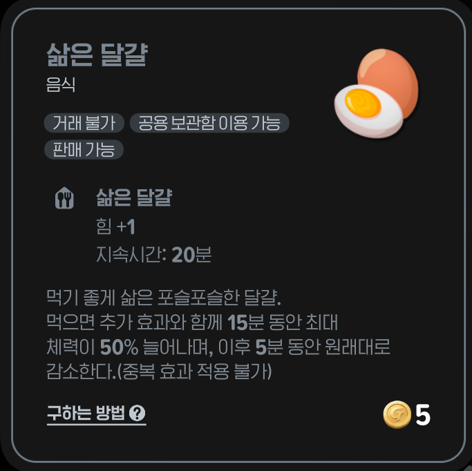 전투 버프부터 자원 공유까지, 삶은 달걀은 작지만 확실한 효율템이에요.