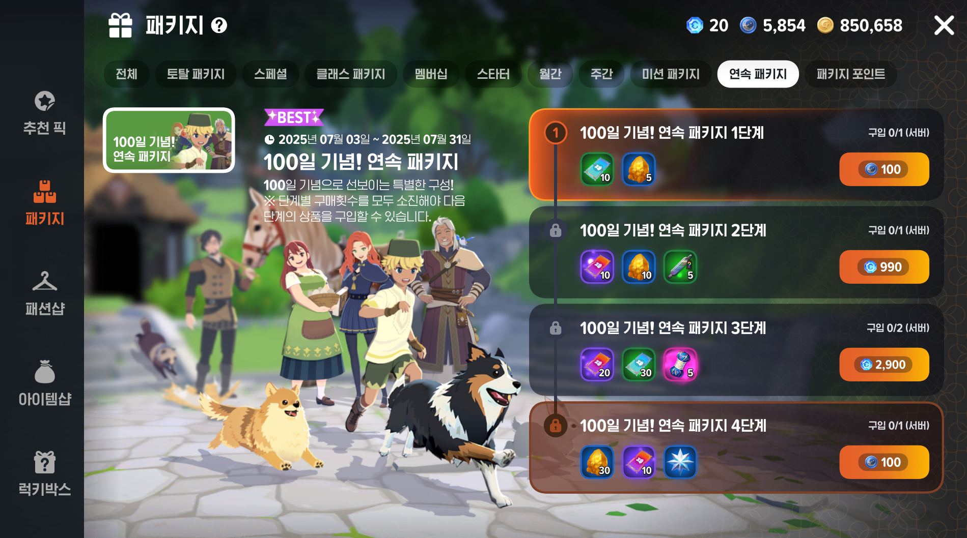 🛒 판매 위치: [게임 내 메뉴] → [캐시샵] → [패키지] → [연속 패키지]